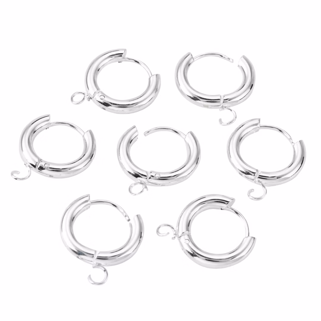 Kirurgiskt silverfärgat stål creoler med öglor, 1 par