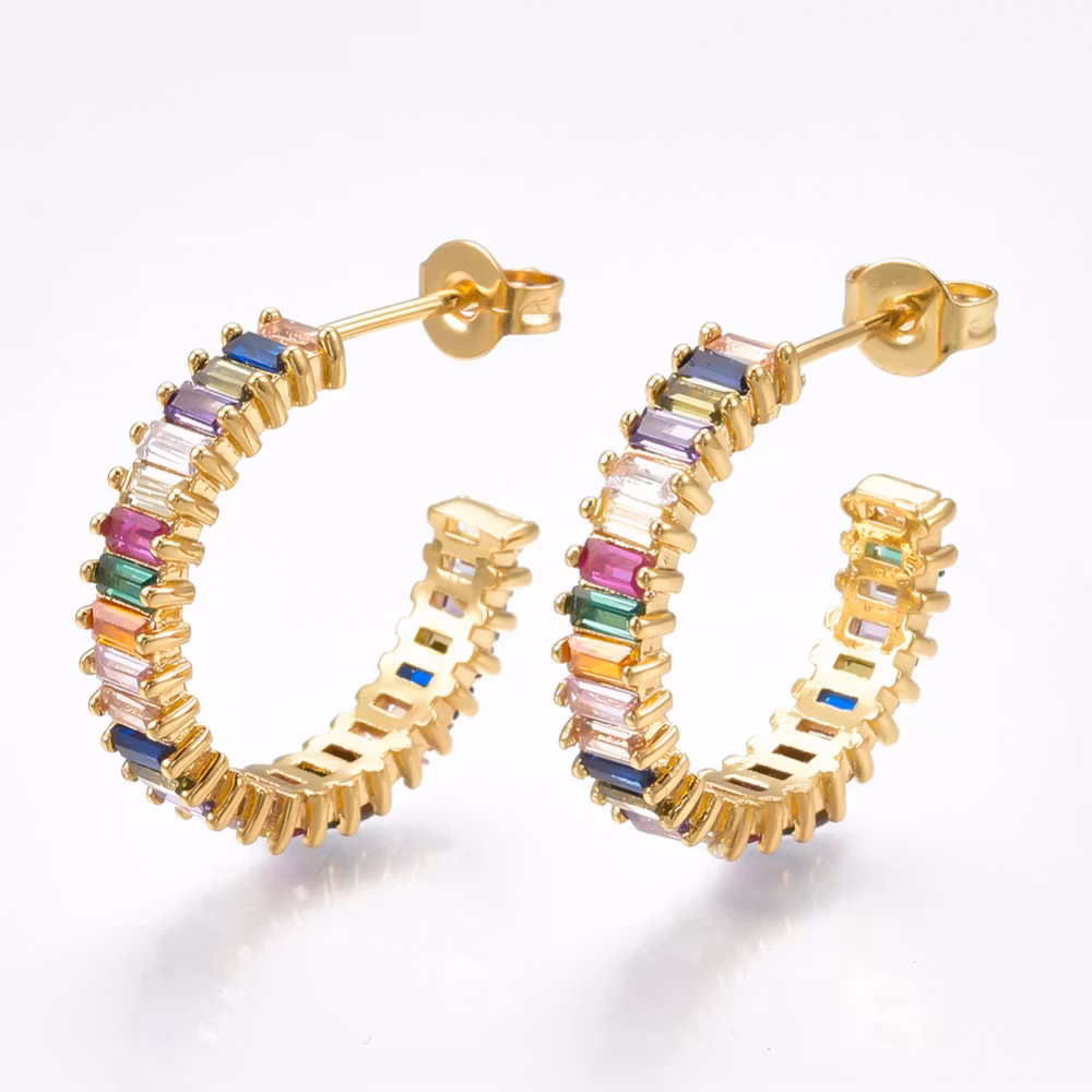 Örhängen av mässing och guldplätering för lång hållbarhet och cubic zirconia, nickelfria. Mått ca 18 cm.