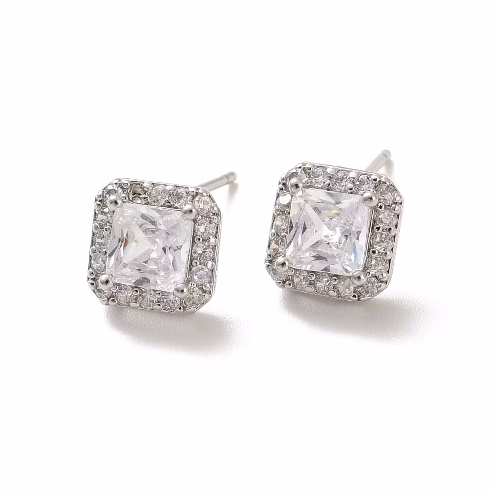 Örhängen av mässing med plätina plätering för lång hållbarhet och cubic zirconia, nickelfria.
