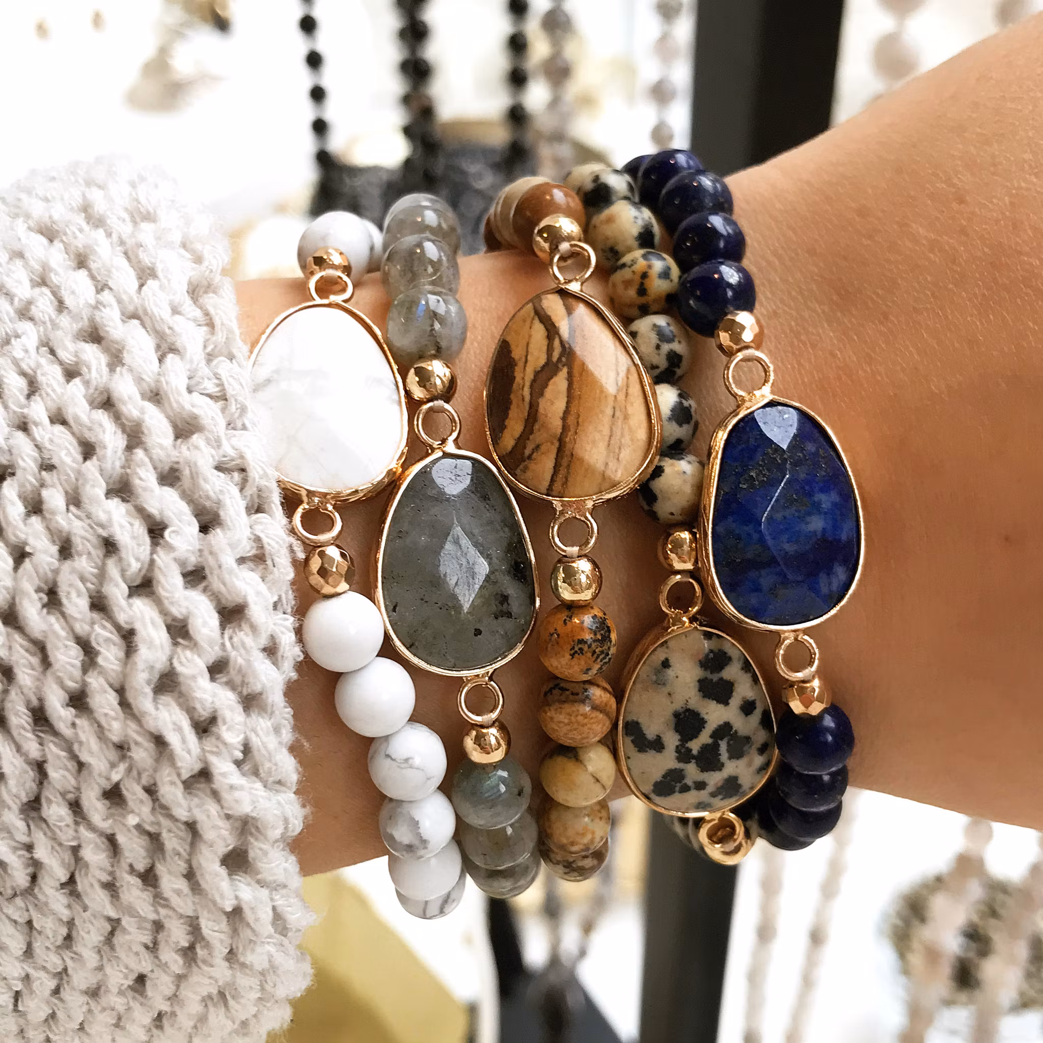 Connector i nickelfri metall och naturlig halvädelsten. Mått: 25x14x6~7mm.