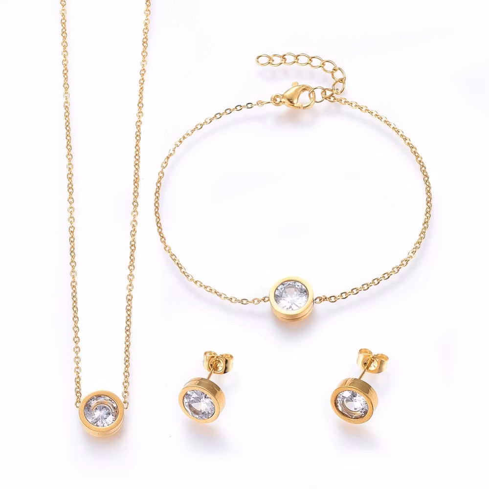 Guldfärgat rostfritt stål smyckesset strass