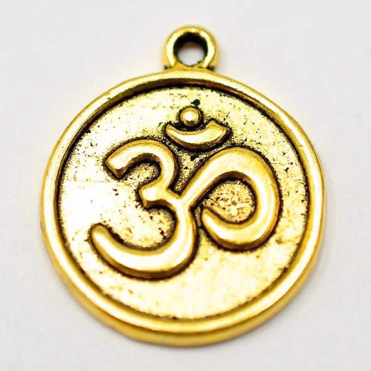 REA: Antikt guldfärgad rund berlock Ohm, 10 st