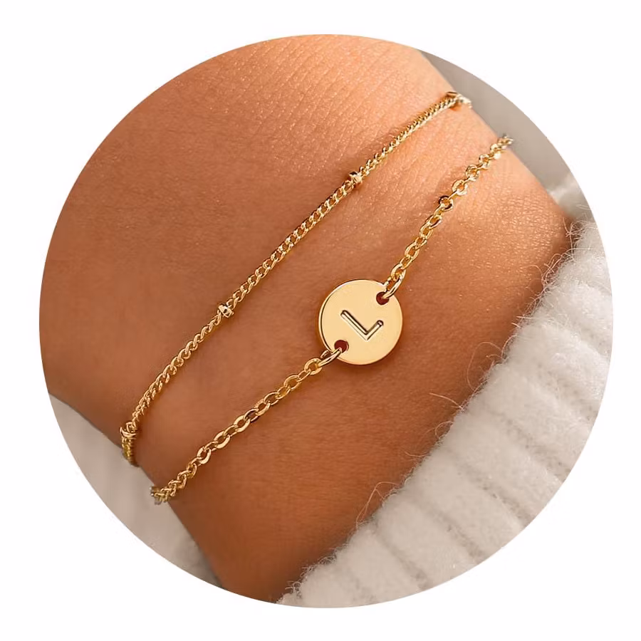 Guldfärgat rostfritt stål bokstavsarmband L, 2-pack