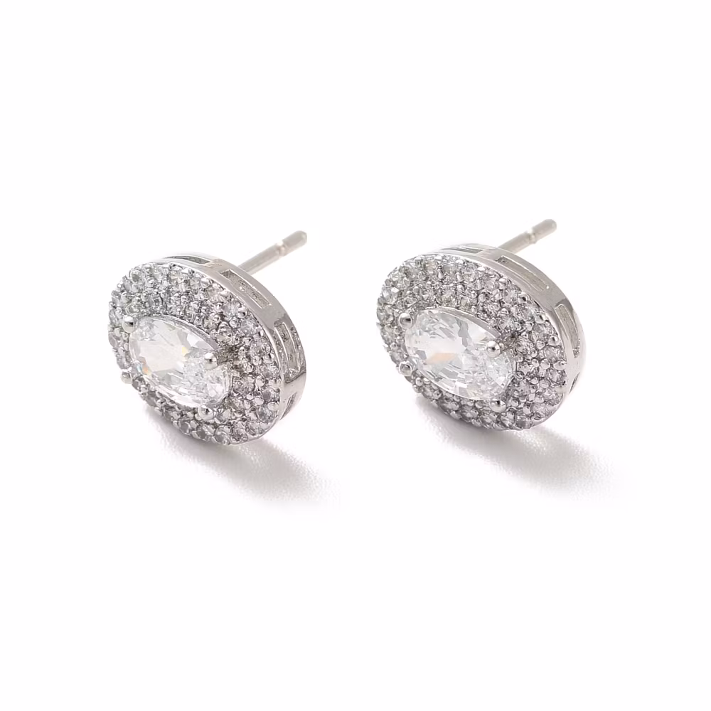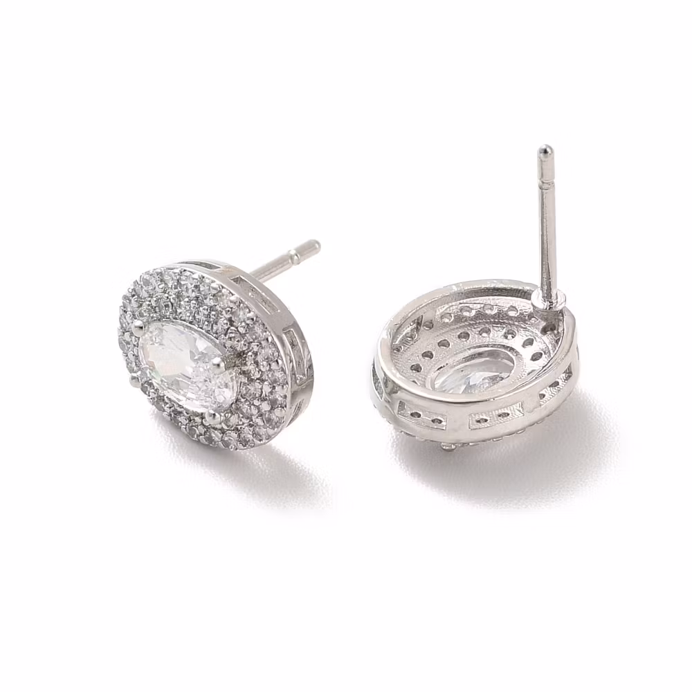 Örhängen av mässing med plätina plätering för lång hållbarhet och cubic zirconia, nickelfria.