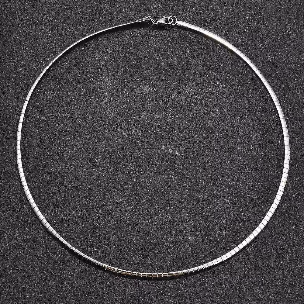Halsband av rostfritt stål. Halsbandet är nickelfritt. Längd 45 cm, bredd ca 3 mm.