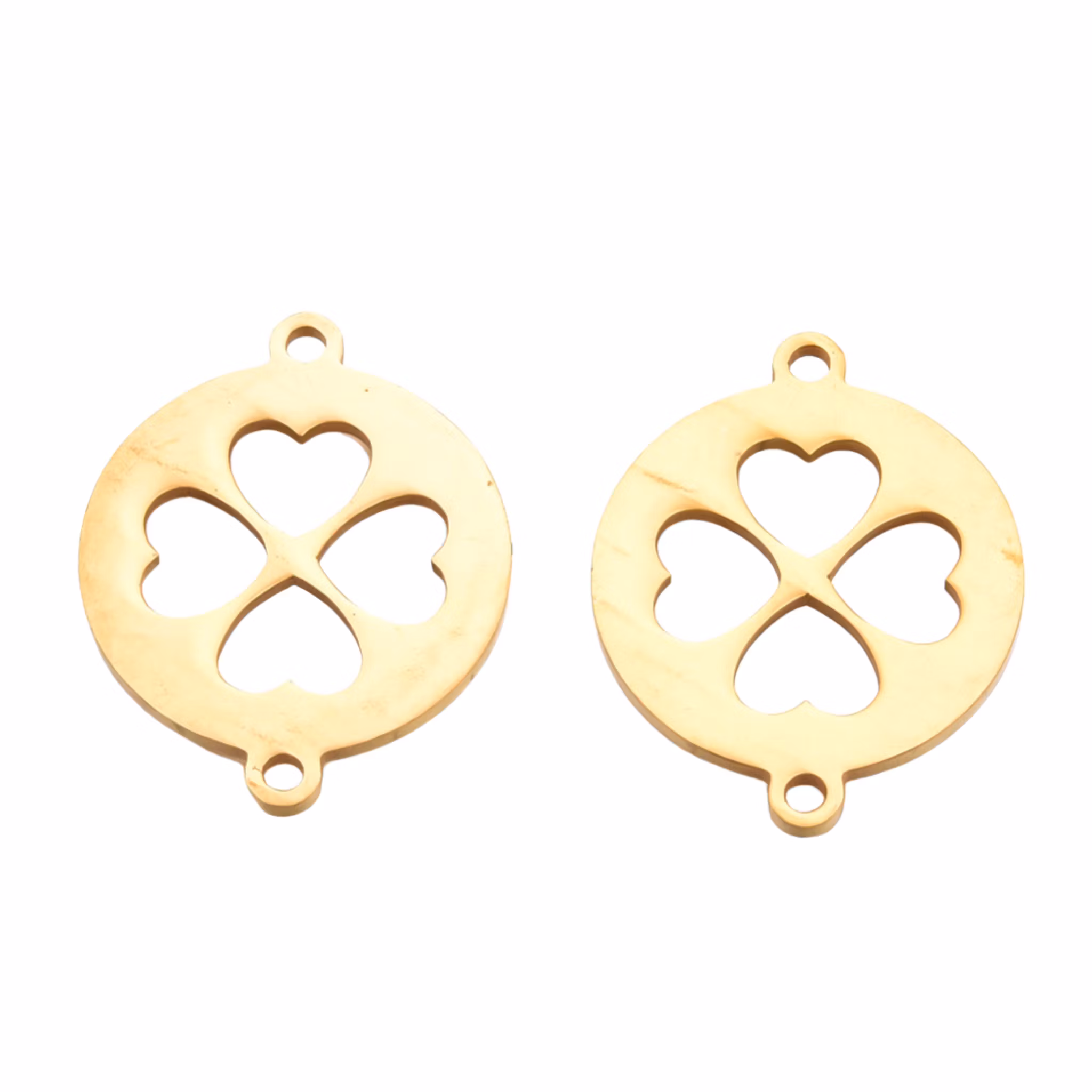 Guldfärgat rostfritt stål connector fyrklöver med PVD plätering, 1 st