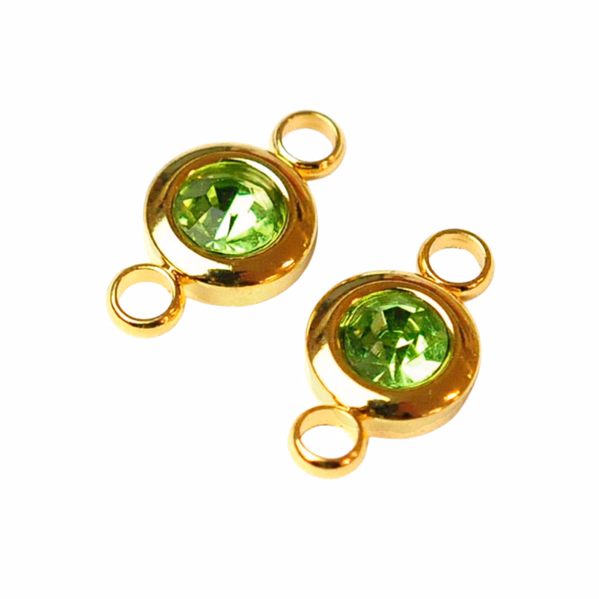 Guldfärgat rostfritt stål connector liten ljusgrön med PVD plätering 1 st