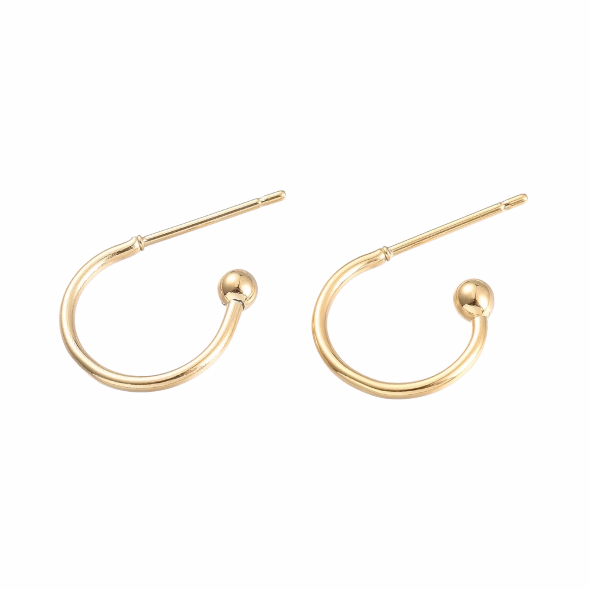 Guldfärgat kirurgiskt stål creoler med liten kula och 18k plätering, 10 st