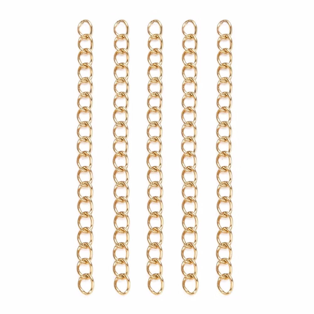 Guldfärgat rostfritt stål förlängningkedjor med PVD, ca 100 st