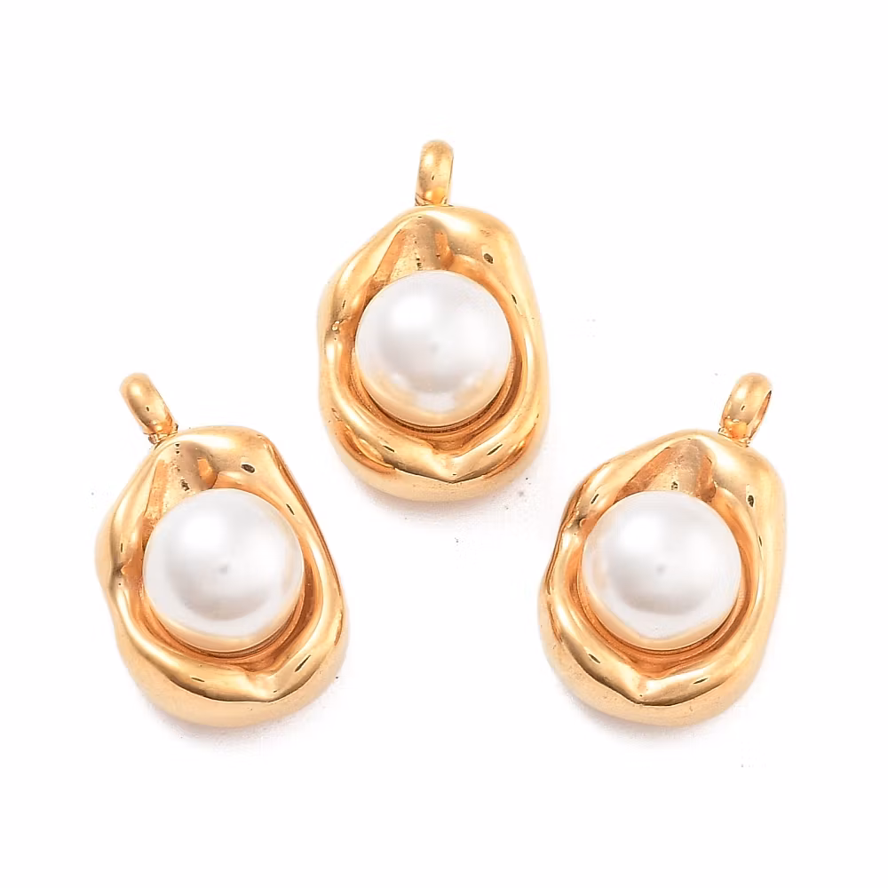 Hänge i rostfritt stål 304 med PVD plätering och pärla av acryl. Mått 14x8.5x7mm.