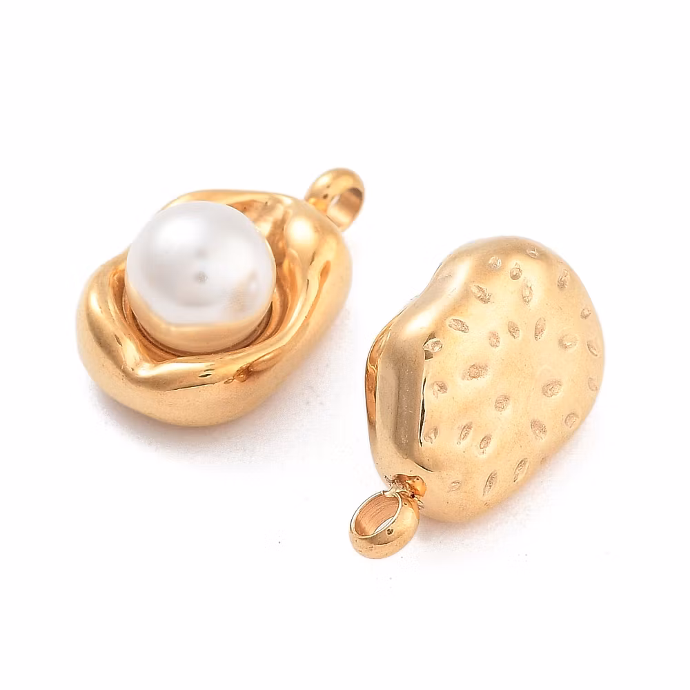 Guldfärgat rostfritt stål hänge pärla med PVD plätering, 1 st