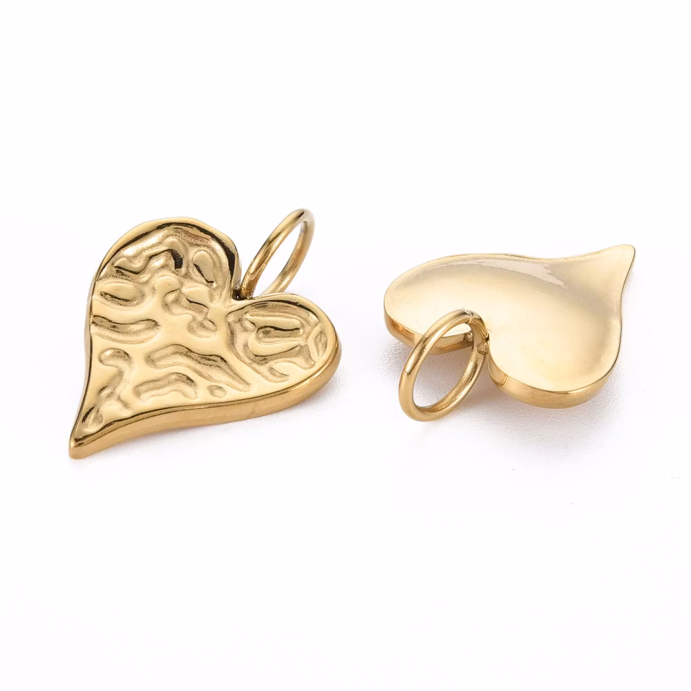 Guldfärgat rostfritt stål hänge mönstrat hjärta med PVD plätering, 1 st