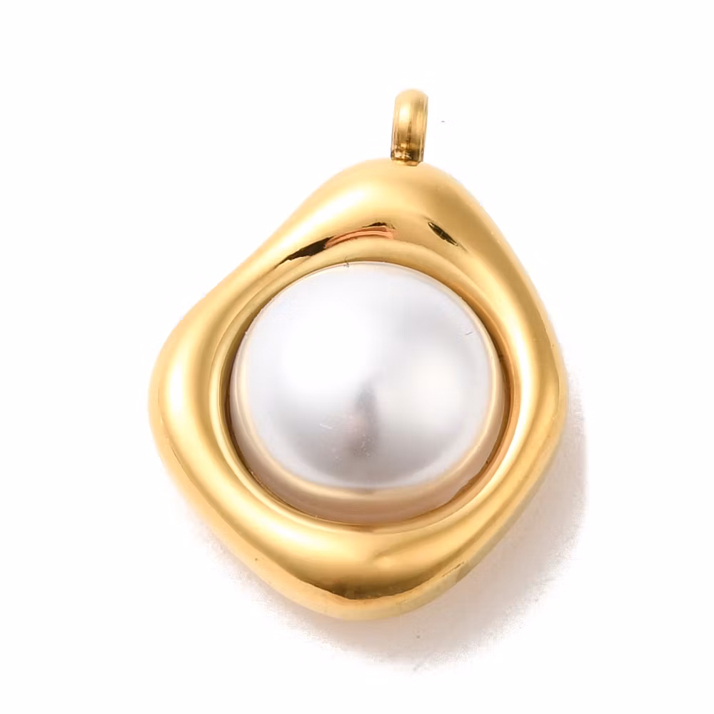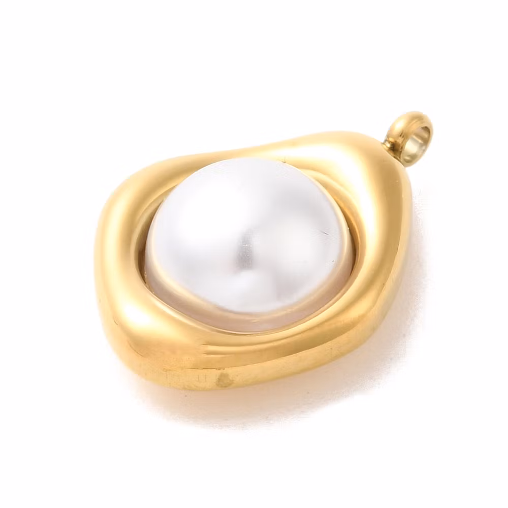 Hänge i rostfritt stål 304 med PVD plätering och pärla av acryl. Mått 20.5x15x8mm.