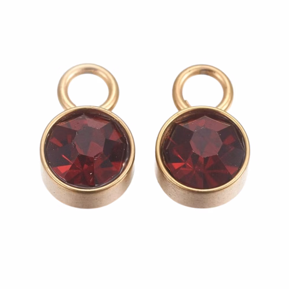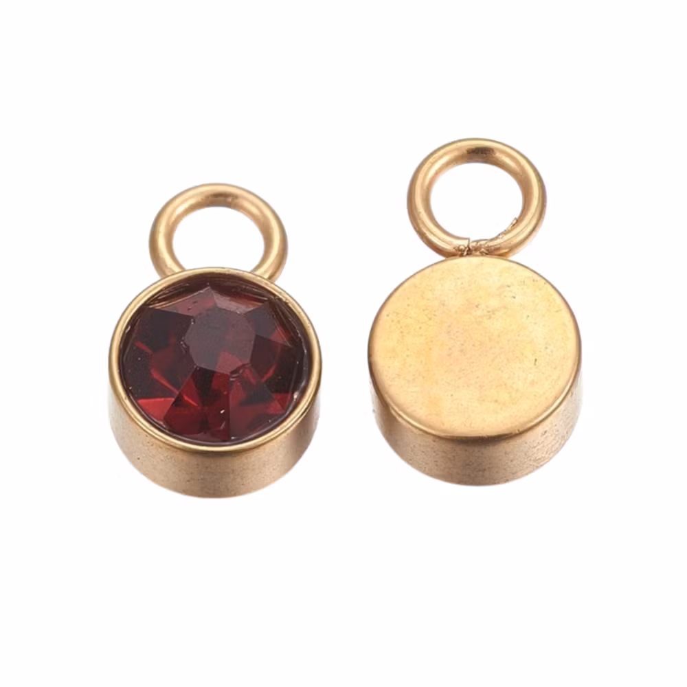 Guldfärgat rostfritt stål berlock vinröd med PVD plätering, 1 st