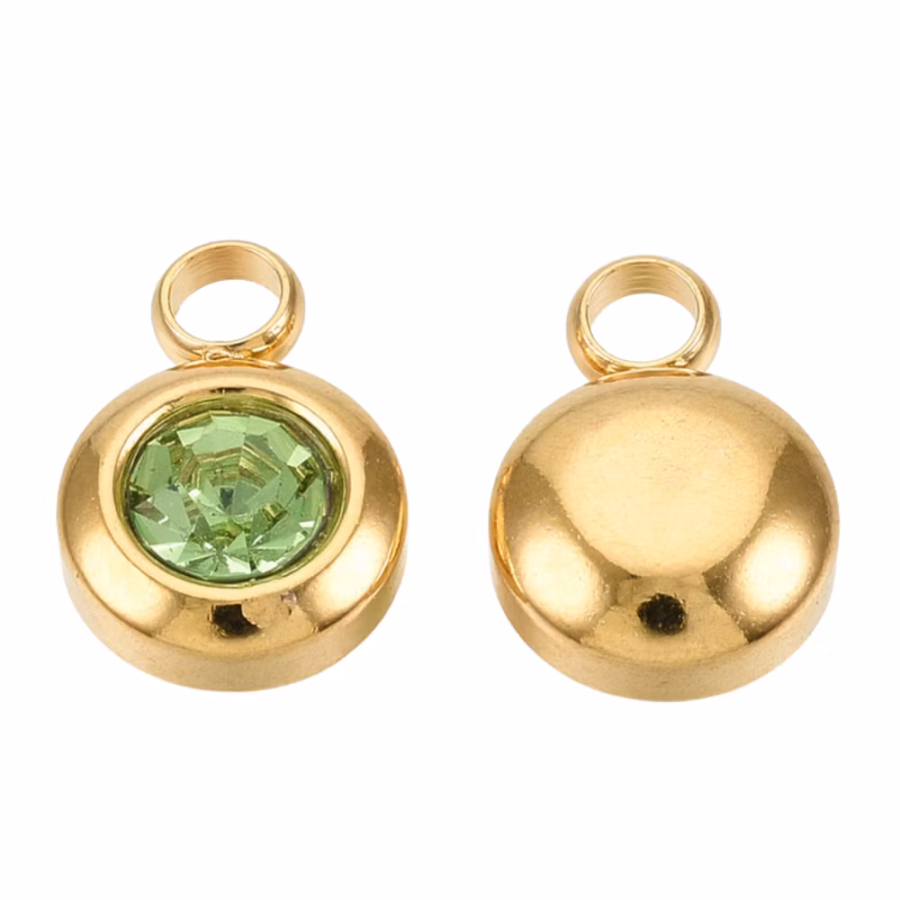 Guldfärgat rostfritt stål berlock liten ljusgrön, 1 st