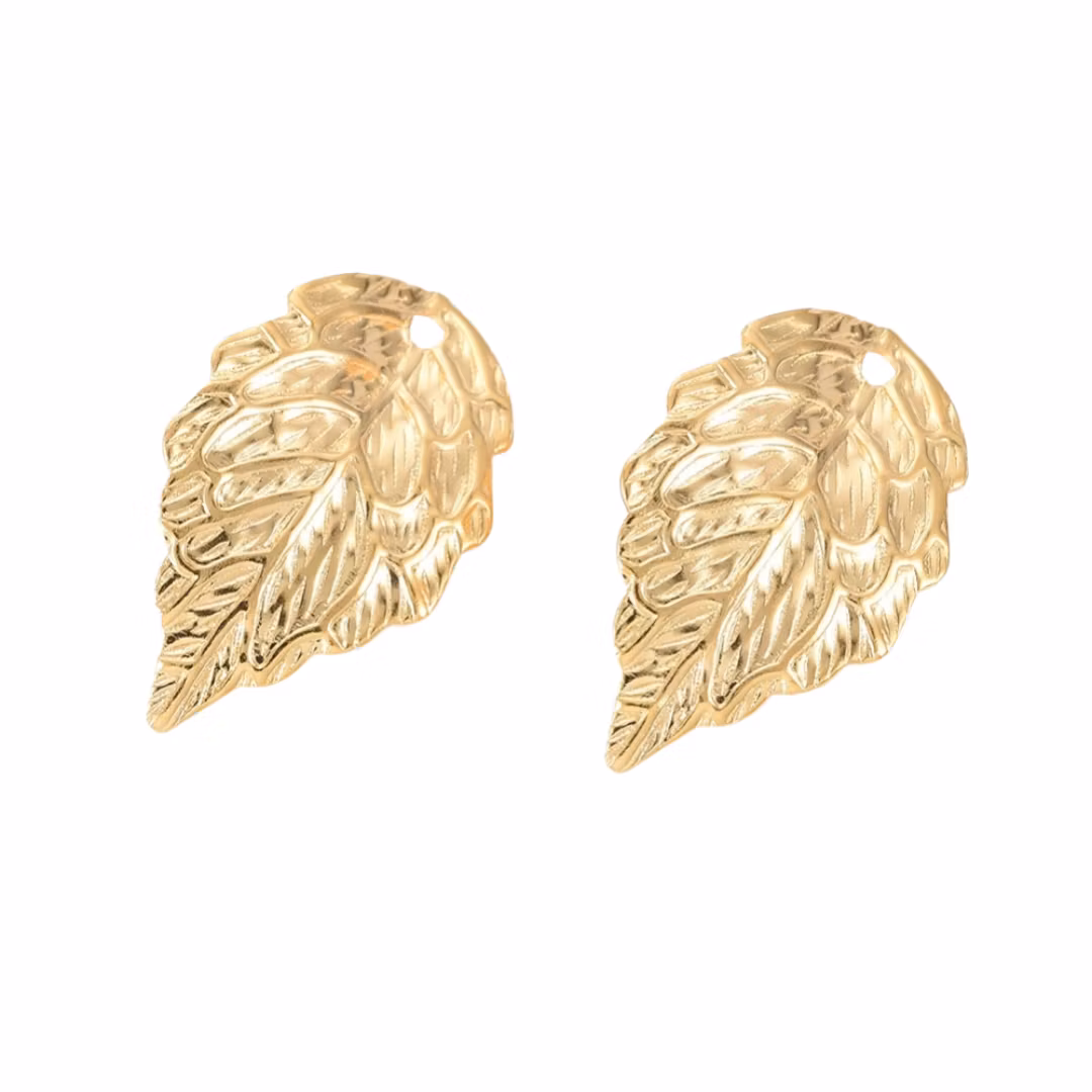 Guldfärgat kirurgiskt stål berlock mönstrade löv 18k, 10 st