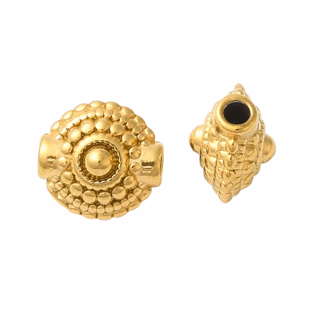 Kirurgiskt guldfärgat stål rund mönstrad pärla med PVD plätering, 1 st