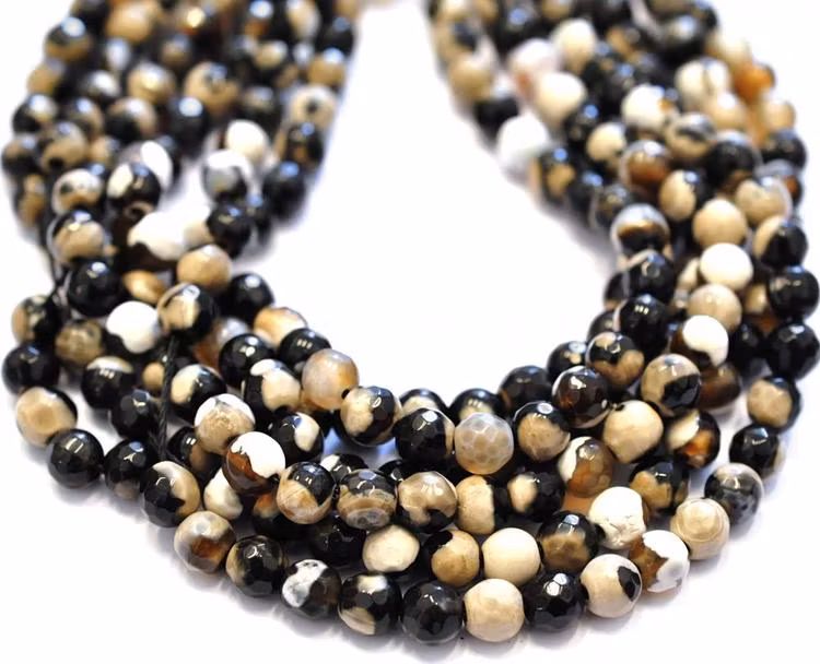 Facetterad svart/beige agat 6 mm, 1 sträng