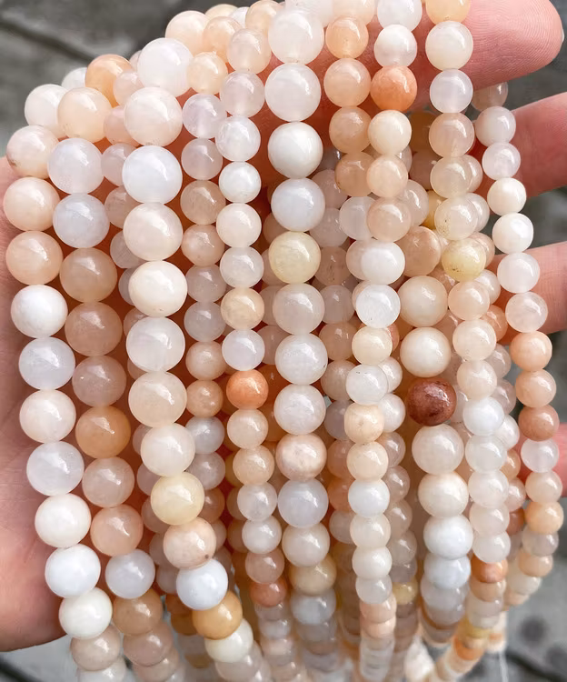 1 sträng, ca 60 st stenar. Stenarna är något ojämna och färgskiftningar kan förekomma. Pärlans hål är ca 0.8 mm.