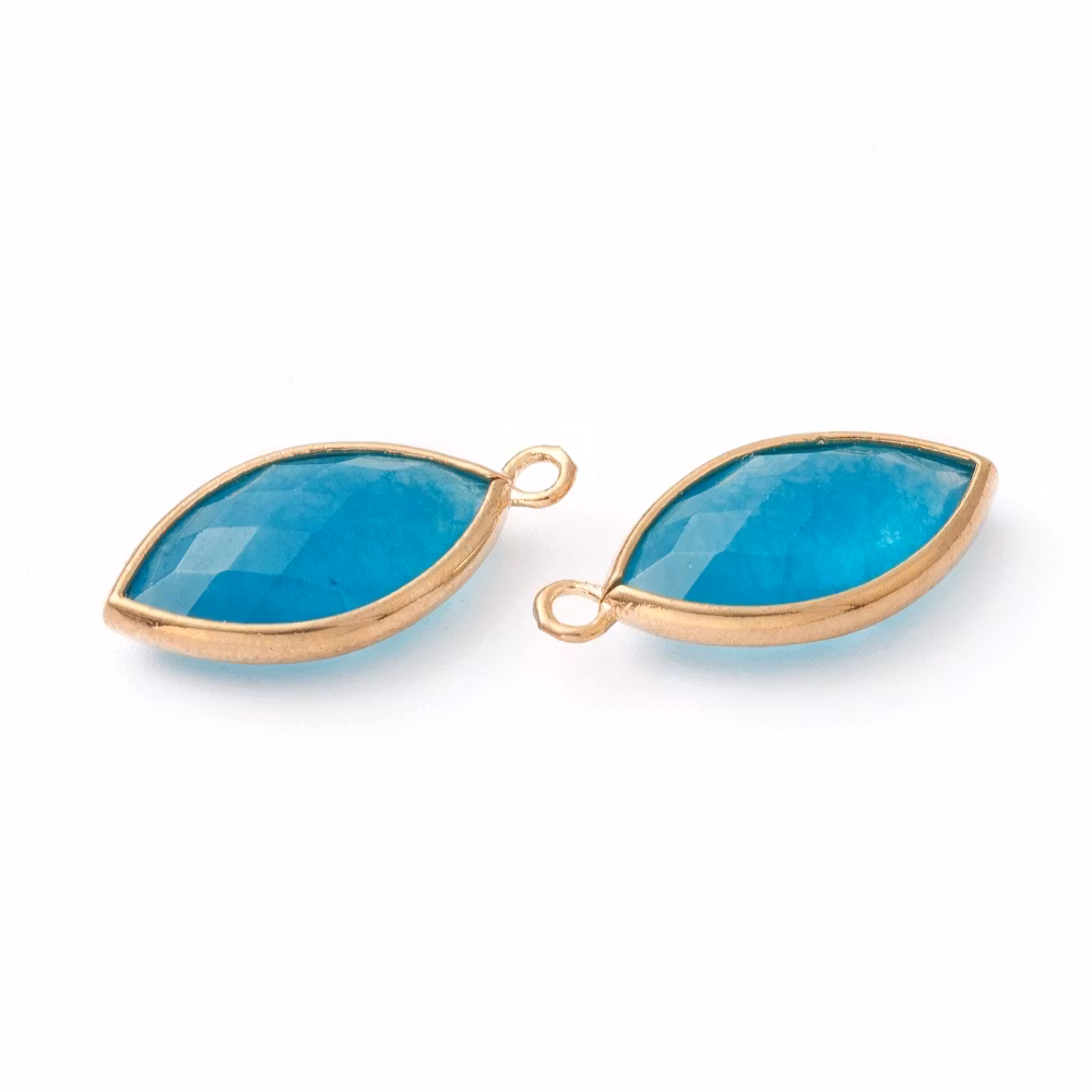 Guldfärgad avlång berlock turkos jade, 1 st