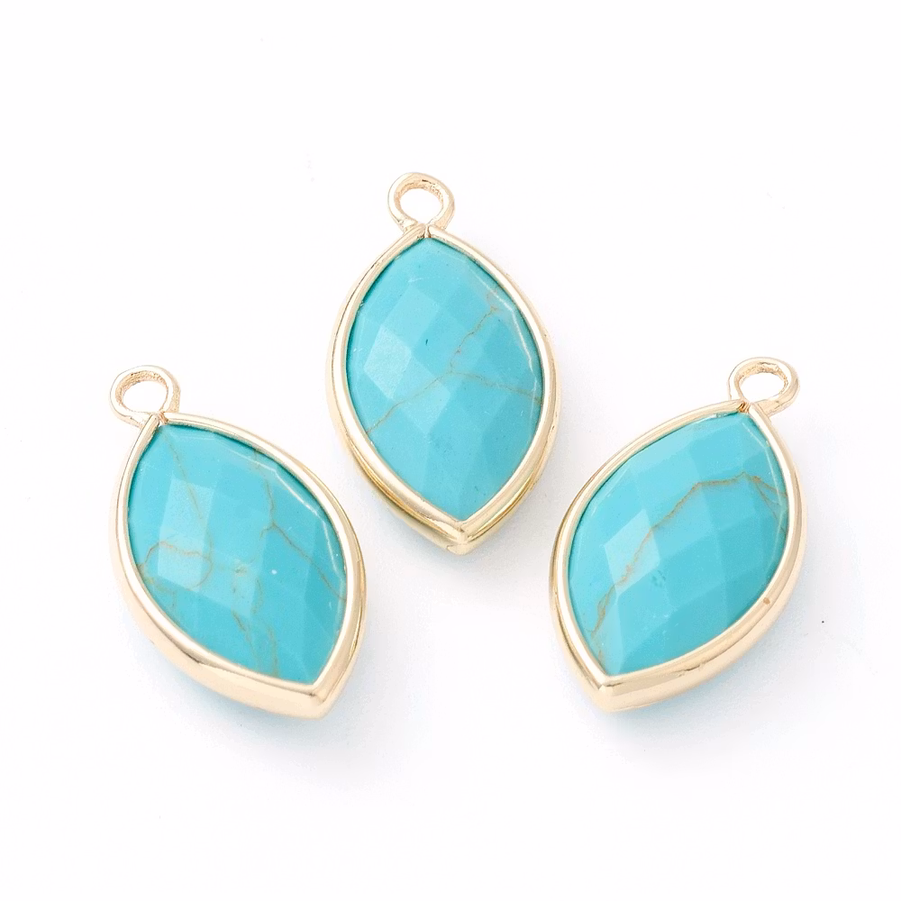 Guldfärgad avlång berlock turkos, 1 st