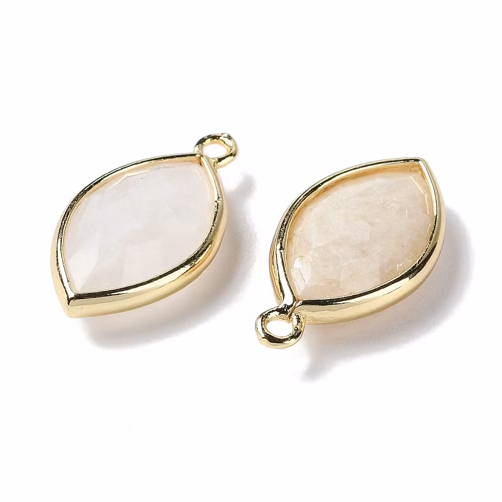 Facetterad berlock av nickelfri metall och halvädelsten. Mått: 22x12x5.5mm. Ojämnheter och färgskiftningar förekommer.