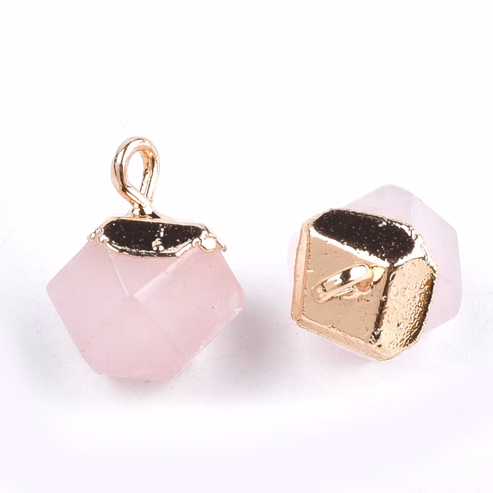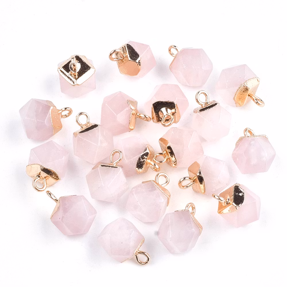 Guldfärgad facetterad berlock rosenkvarts, st