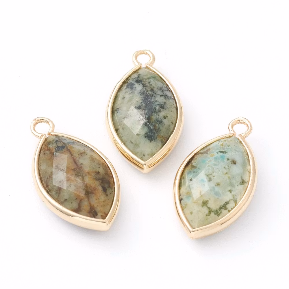 Guldfärgad avlång berlock afrikansk turkos, 1 st