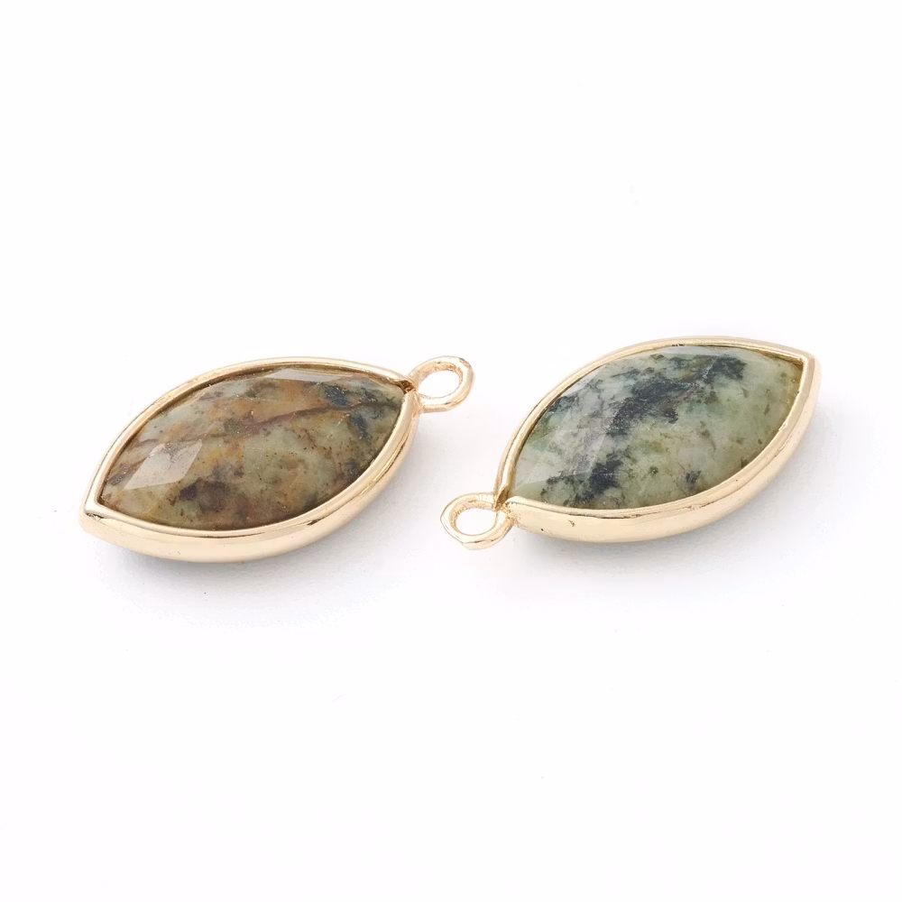 Facetterad berlock av nickelfri metall och halvädelsten. Mått: 22x12x5.5mm. Ojämnheter och färgskiftningar förekommer.