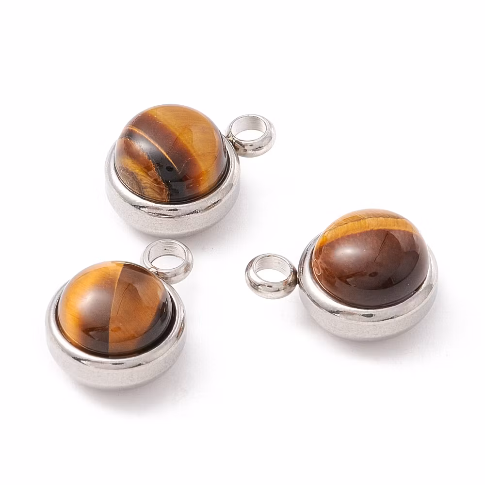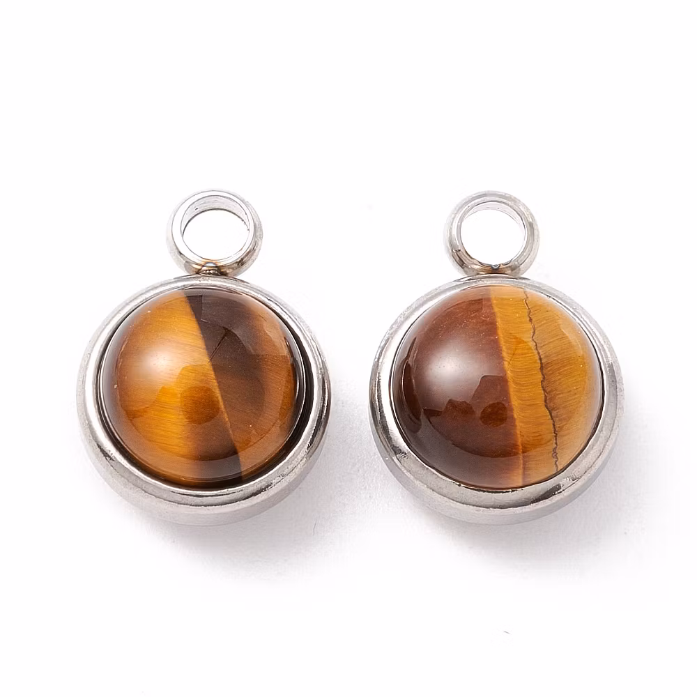 Berlock av rostfritt stål 304 och halvädelsten. Mått: 13.5x10x7.5mm, hål: 2.5 mm. Ojämnheter och färgskiftningar förekommer.