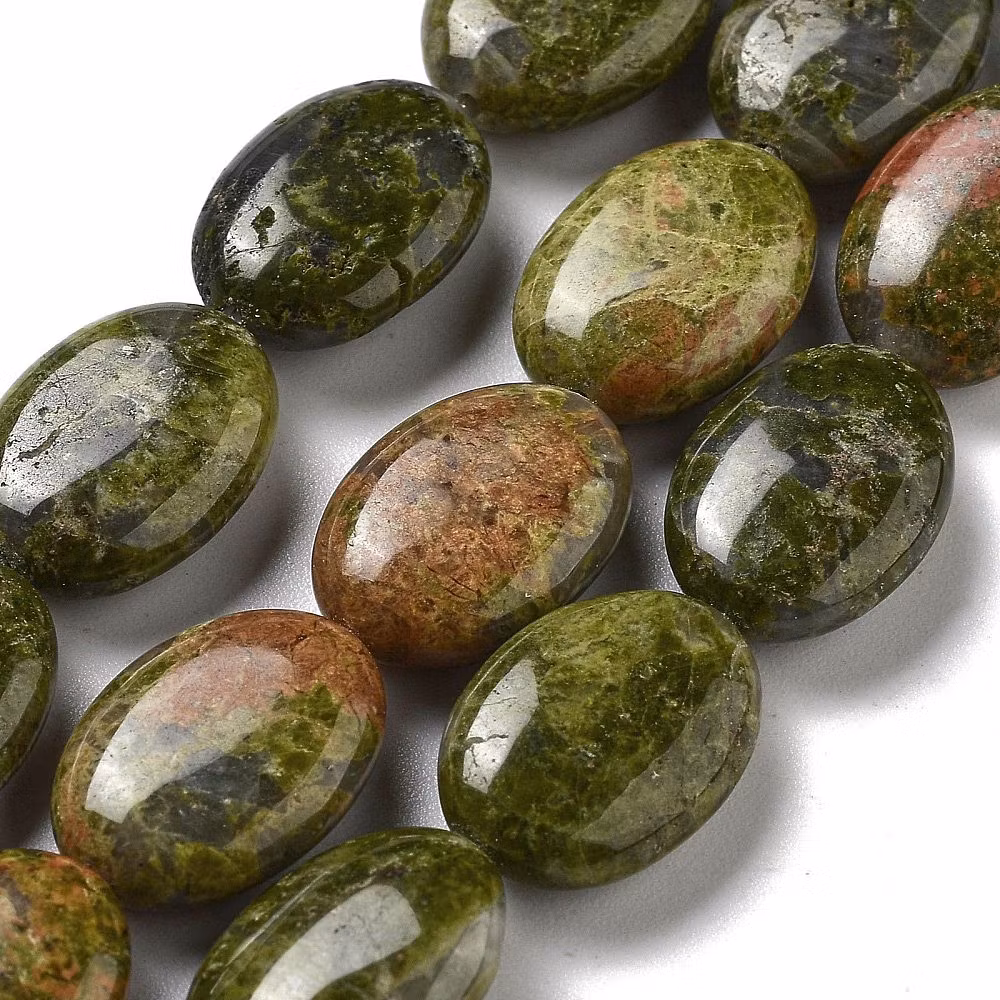 1 slät sten med genomgående hål. Alla stenar är olika och färgskiftningar förekommer. Mått 18~18.5x13~13.5x6~6.5mm, hål ca 1 mm.