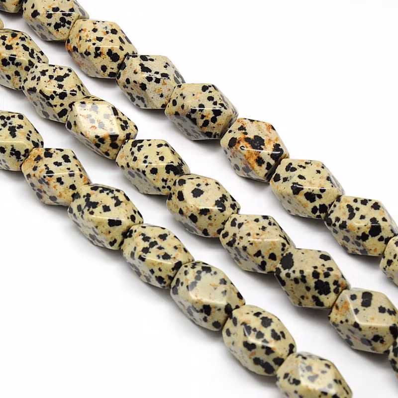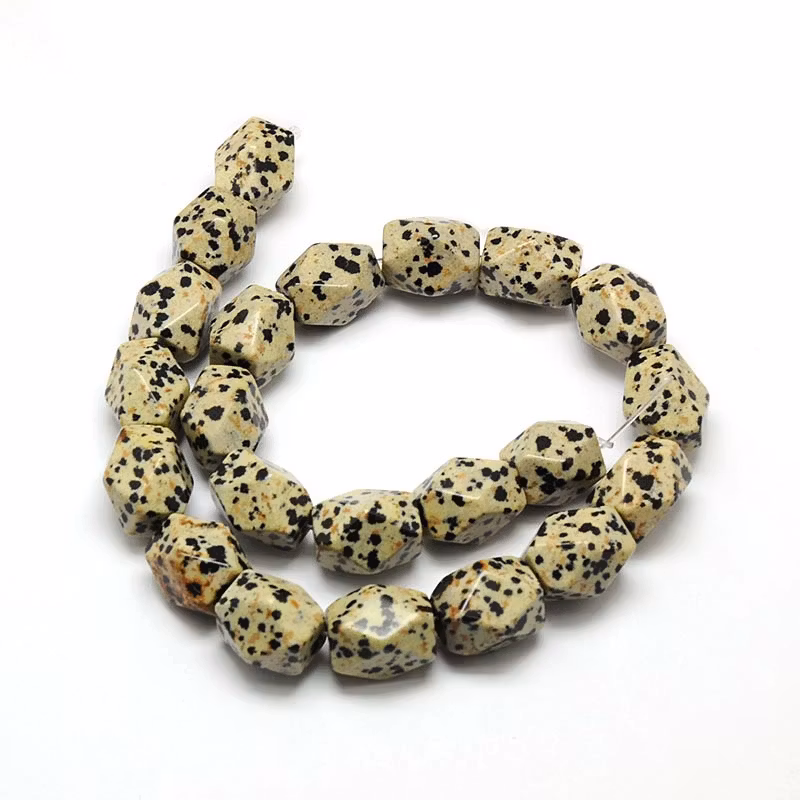 Dalmatiner jaspis sägs vara jordande och förknippas starkt med glädje, lättsamhet och barnslig energi.