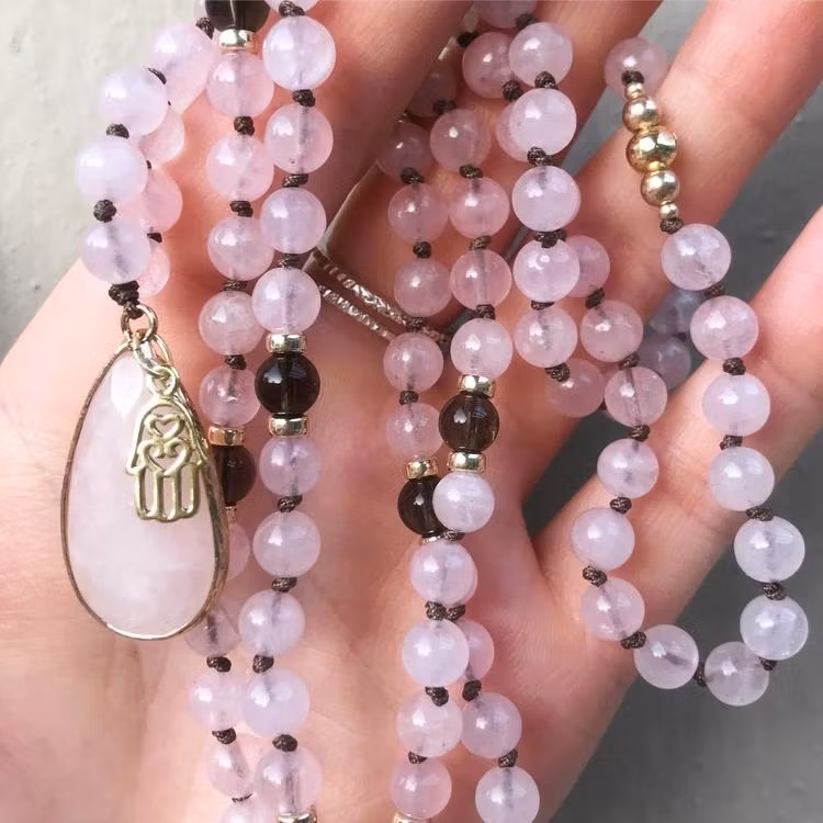 Gold-colored rose quartz pendant, 1 pc.