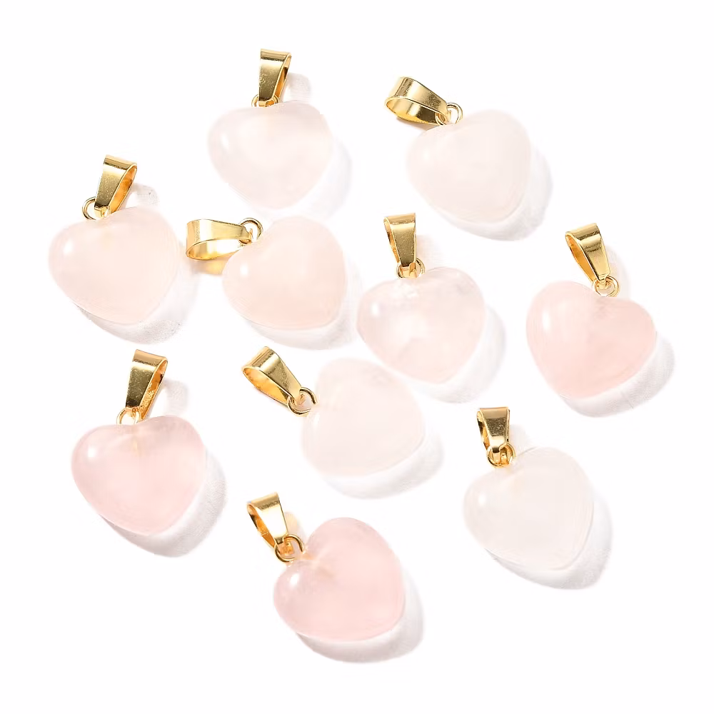 Guldfärgat hänge hjärta rosenkvarts, 1 st