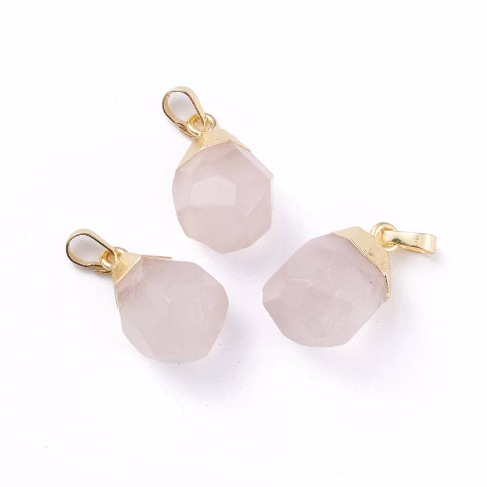 Guldfärgat hänge droppe rosenkvarts, 1 st
