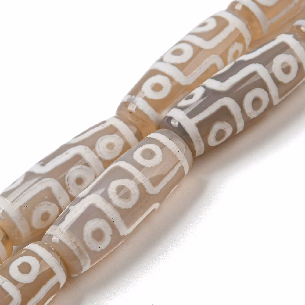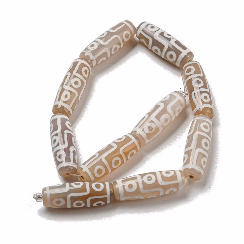 Tibetansk DZI avlång bumling vit och beige, 1 st