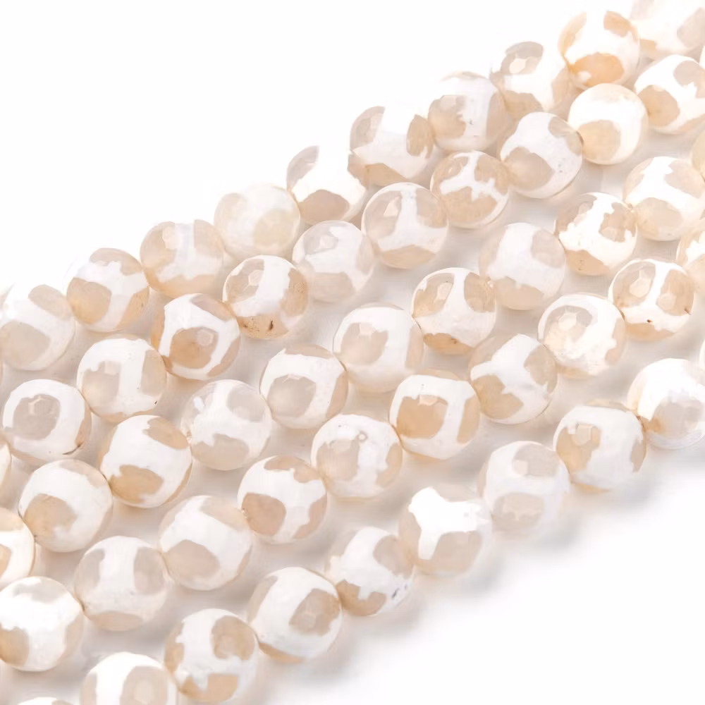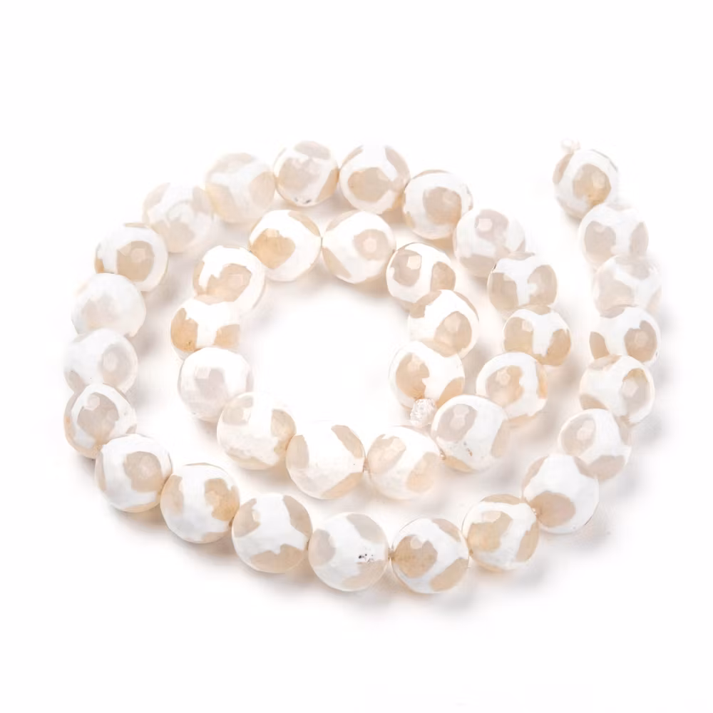 Tibetansk halvädelsten Dzi vit 10 mm, 1 sträng