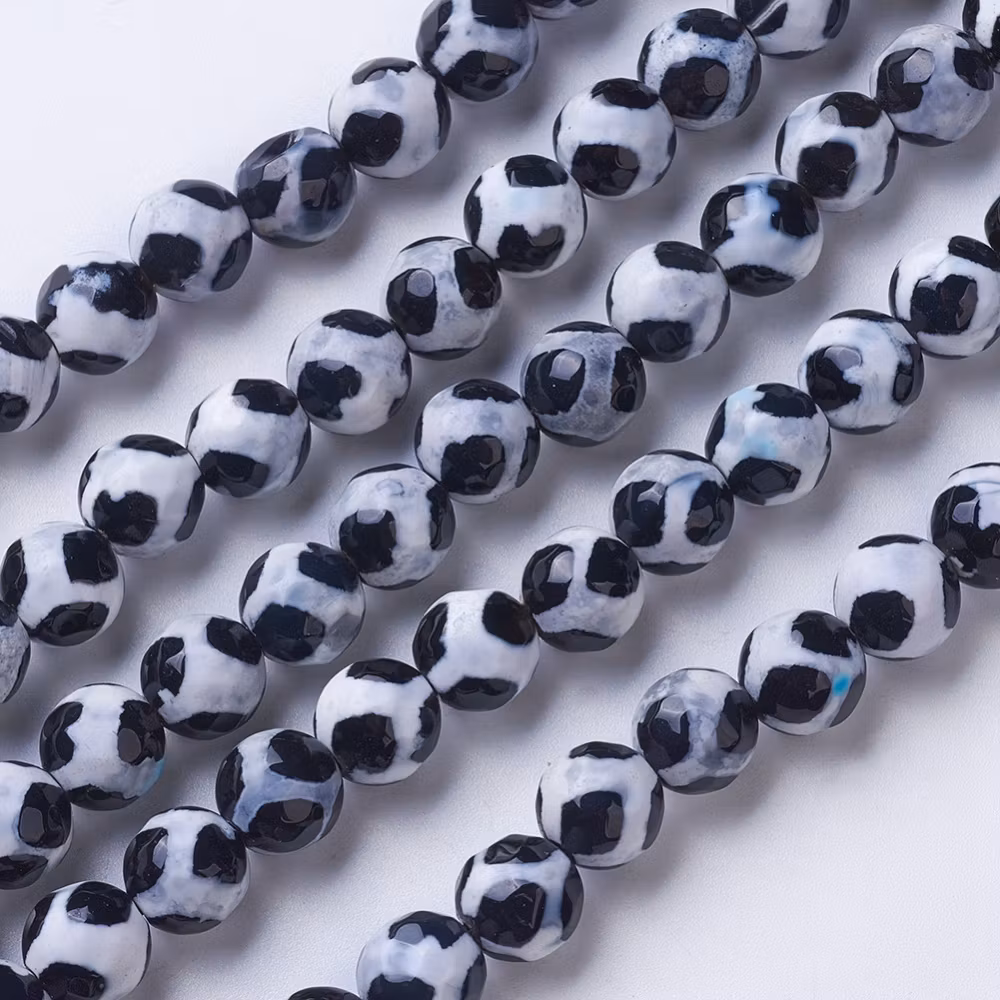 Tibetansk halvädelsten Dzi svart mönstrad 8 mm, 1 sträng