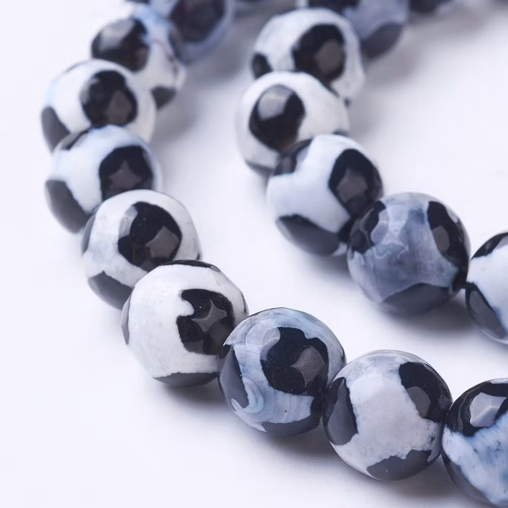 Tibetansk halvädelsten Dzi svart mönstrad 6 mm, 1 sträng