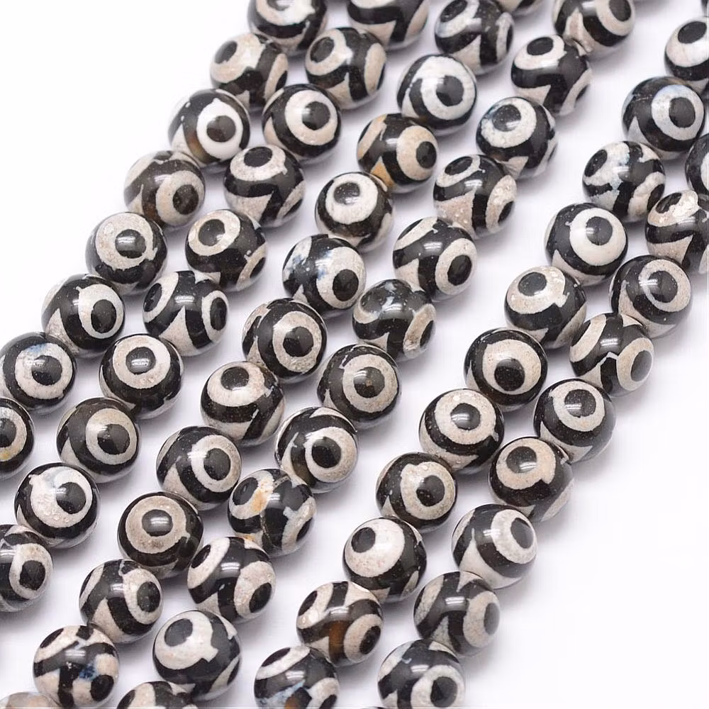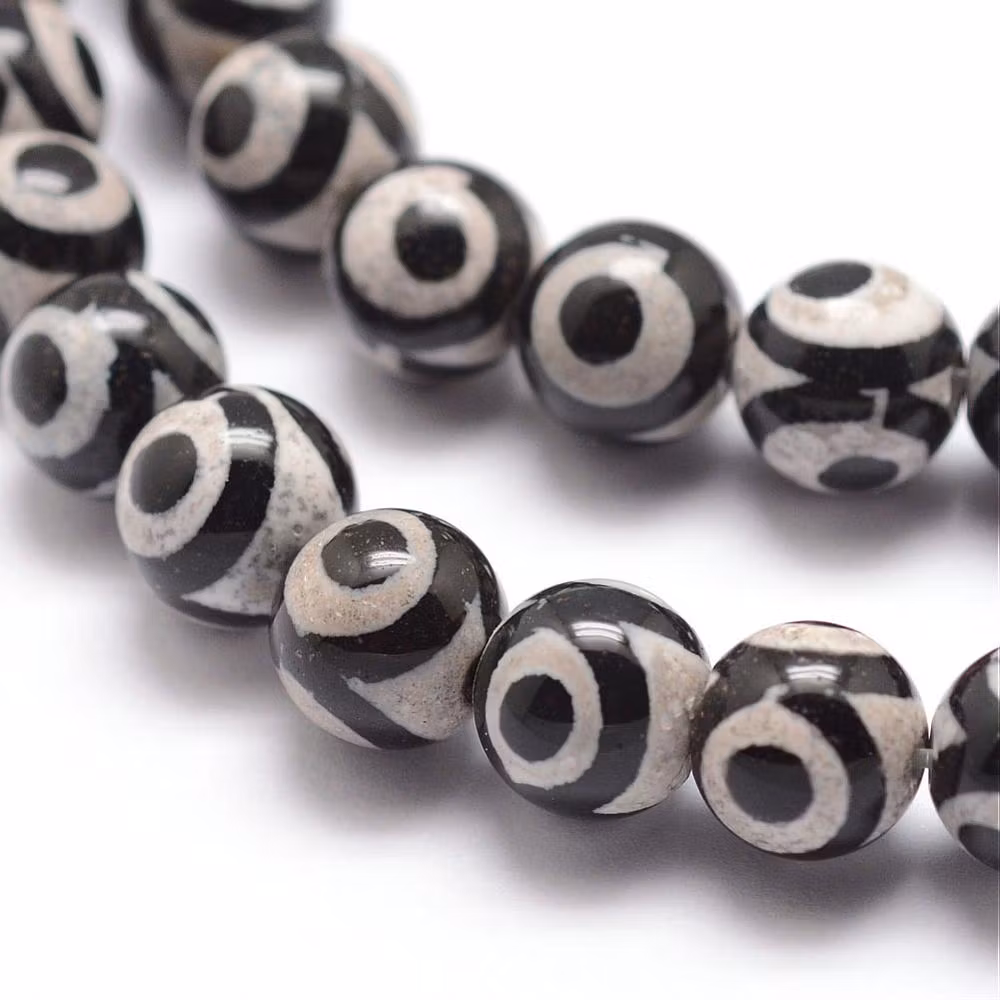 Tibetansk halvädelsten Dzi vit och svart 6 mm, 1 sträng