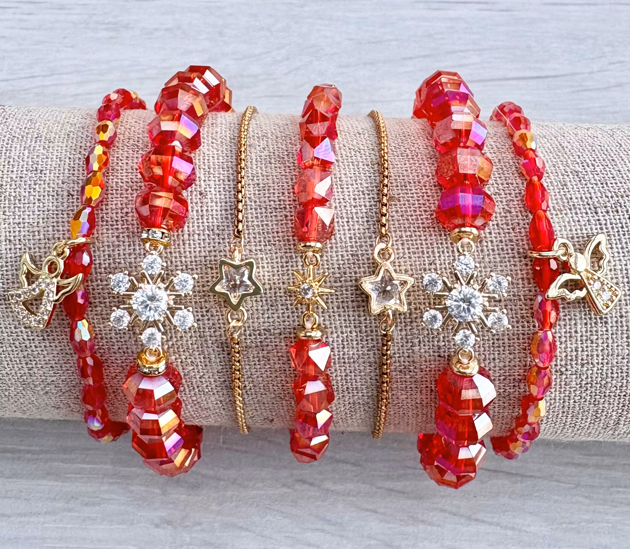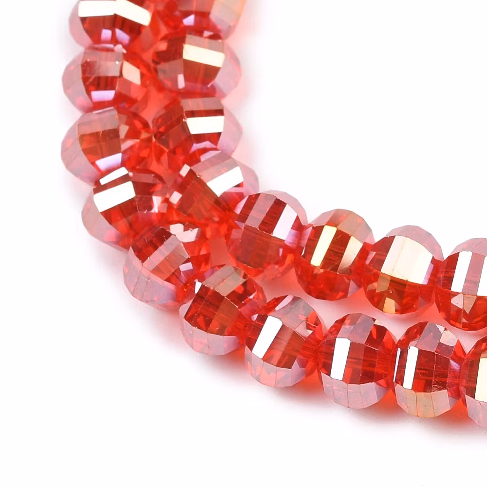 Facetterade glaspärlor röda AB 8x6 mm, 1 sträng