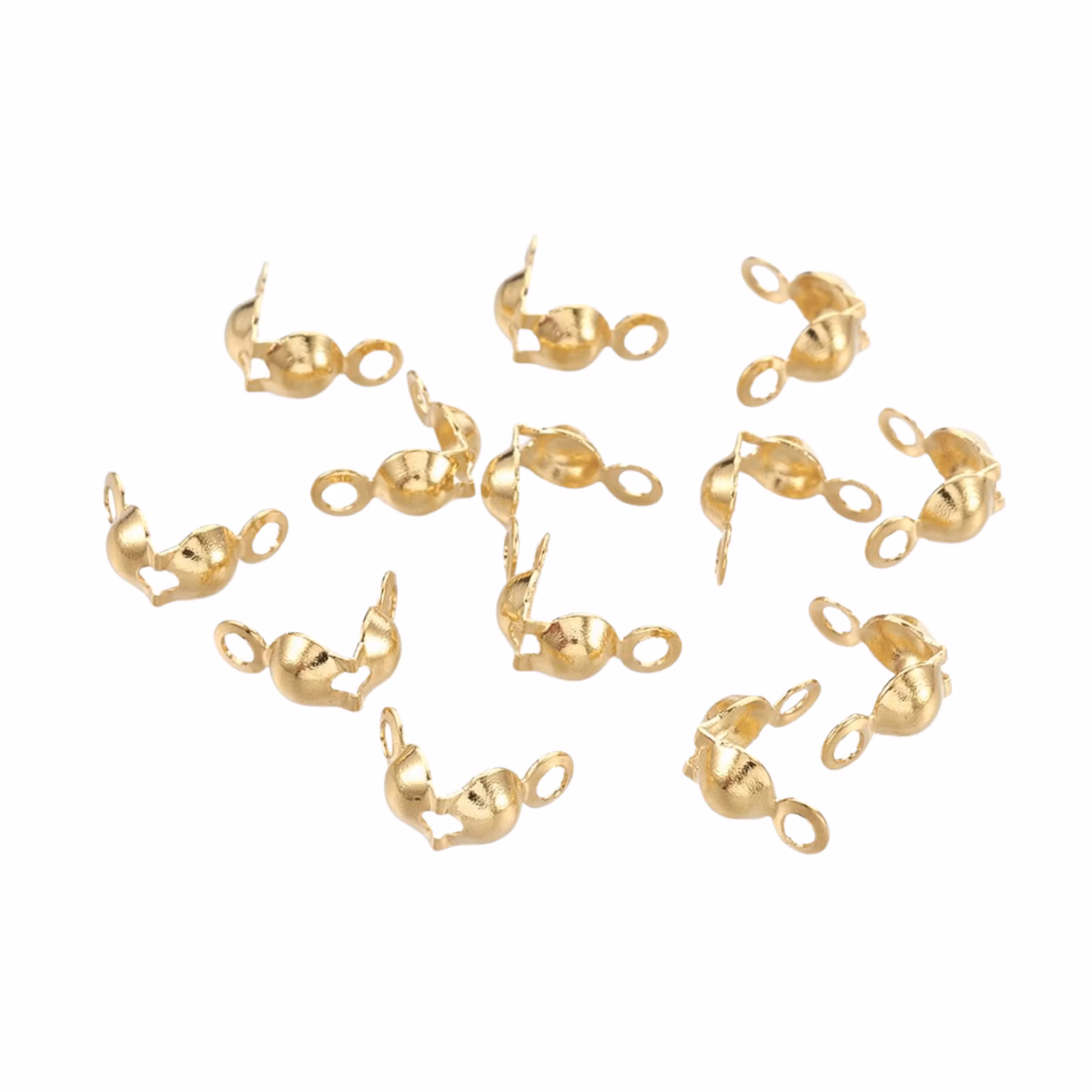 Guldfärgat rostfritt stål knutgömmor 4 mm med öglor och PVD plätering, ca 100 st