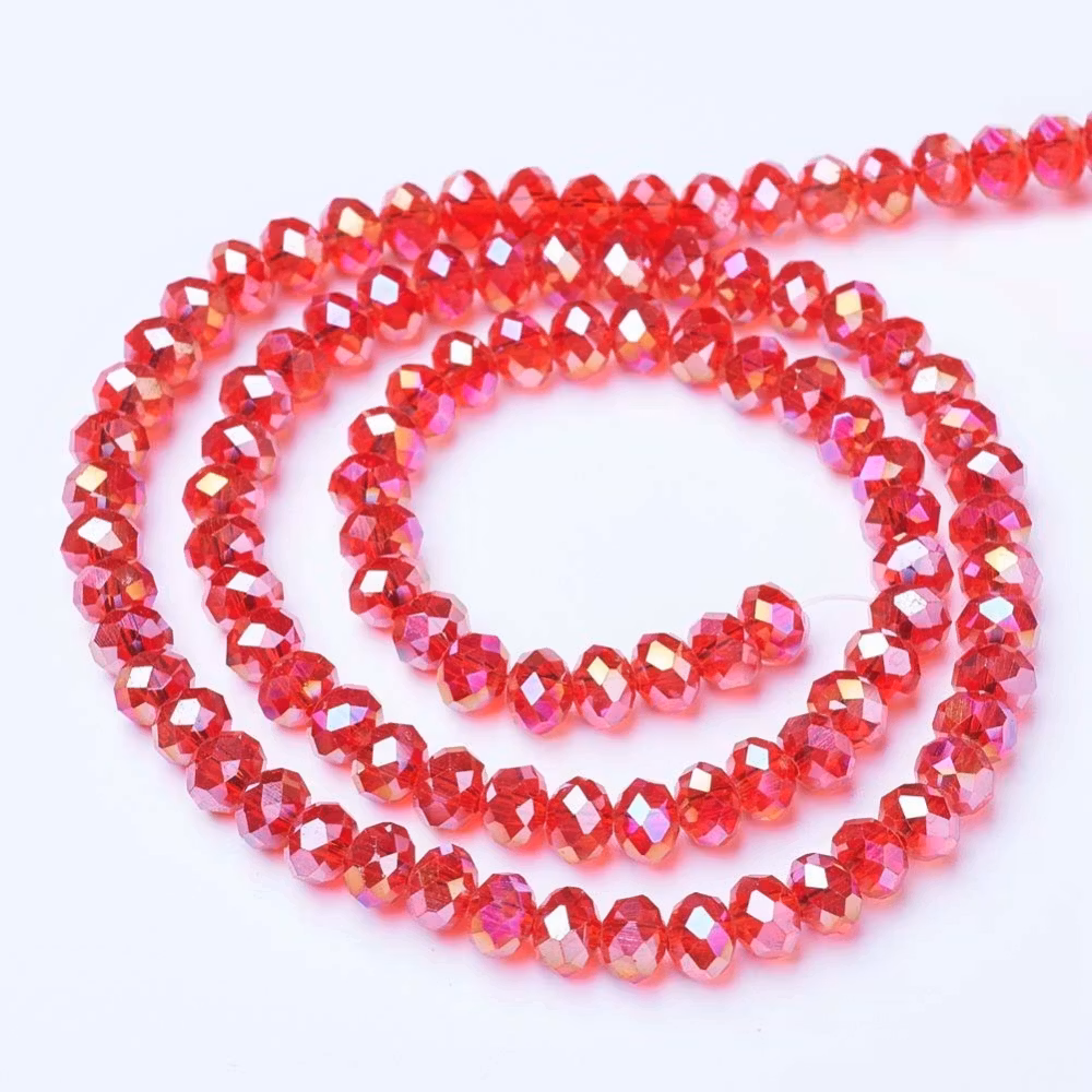 Facetterade abacus 8x6 mm röd AB, 1 sträng