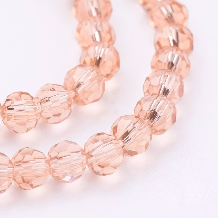 Facetterade glaspärlor 6 mm laxrosa, 1 sträng