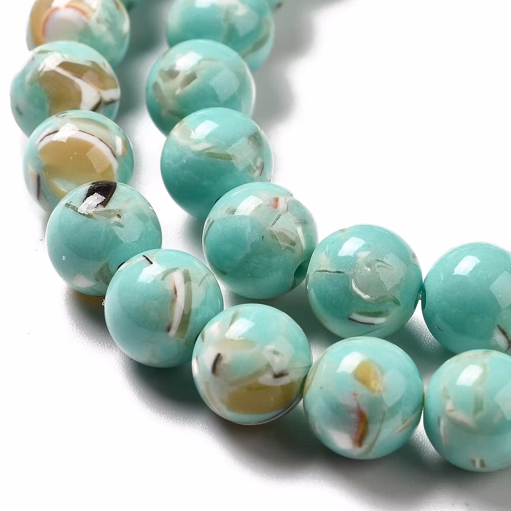 Snäckskalspärlor runda 6 mm gröna, 1 sträng
