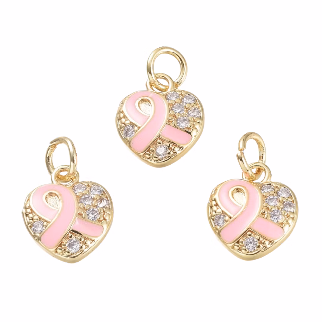 Guldfärgad berlock cubic zirconia & ljusrosa, 1 st