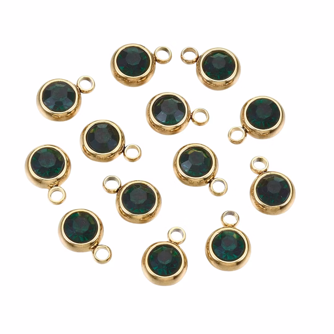 Gold-colored stainless steel charm small dark green, 1 pc.