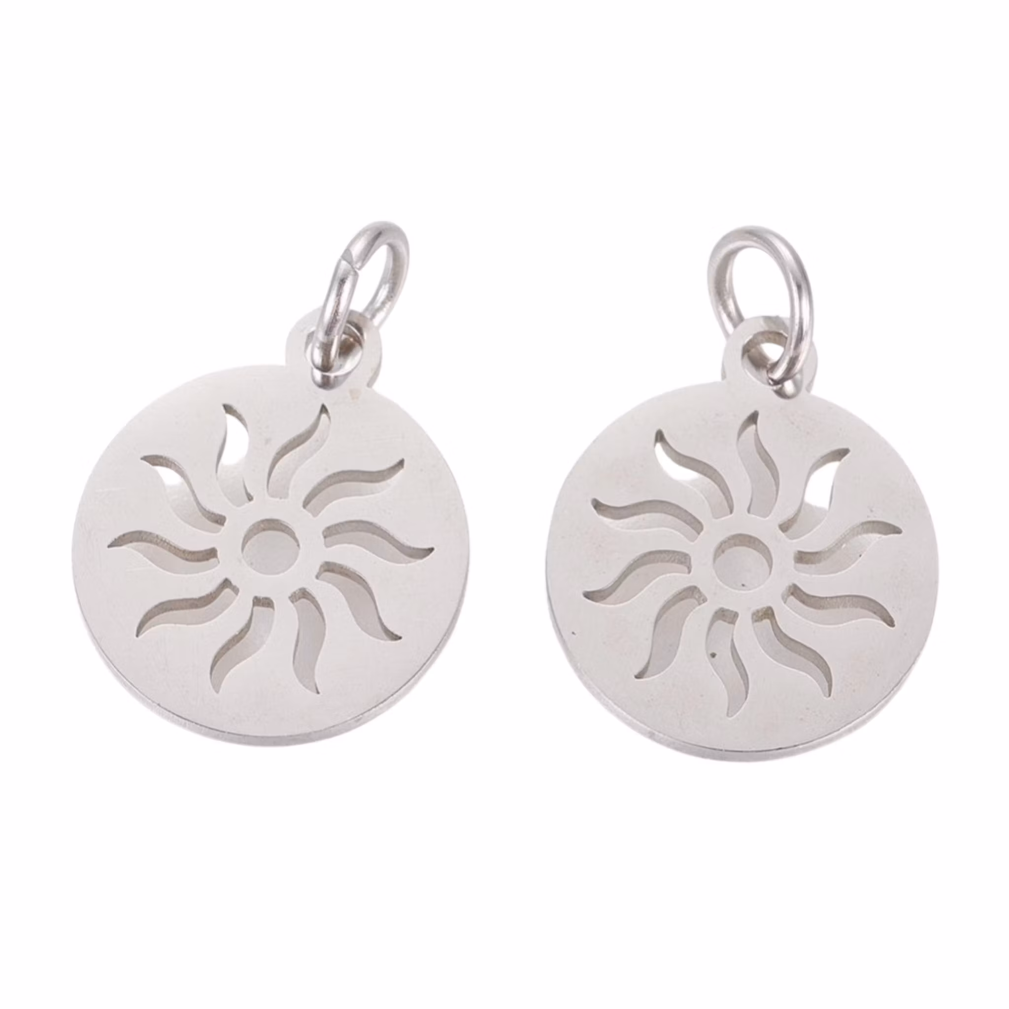 Guldfärgat rostfritt berlock rund med sol och PVD plätering, 1 st