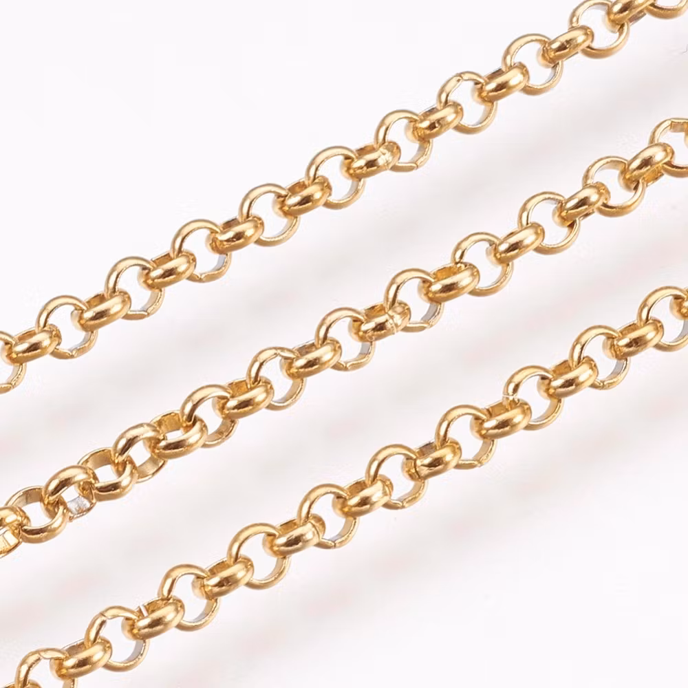 Guldfärgat rostfritt stål ärtlänk 2 mm med PVD plätering, 1 m