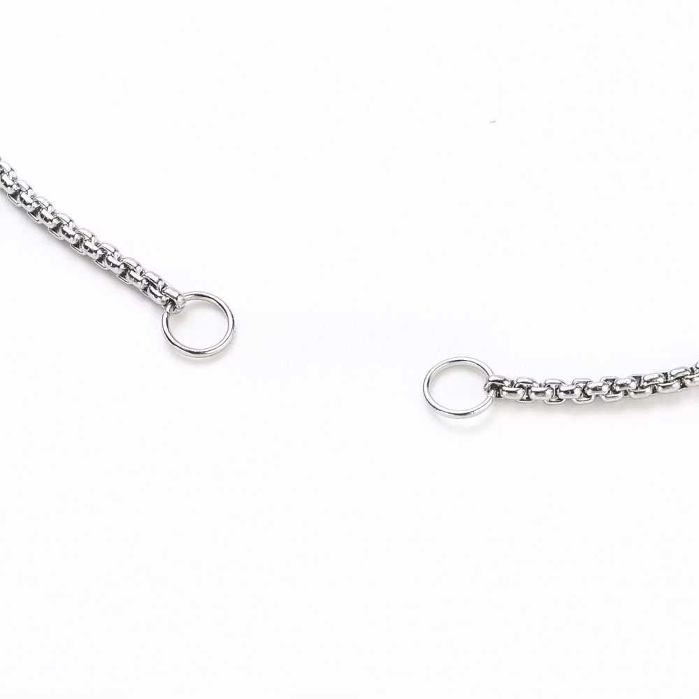 Fyrkantig armbandslänk med slider av rostfritt stål 304. Kedjan är ca 1.4 mm och nickelfri.